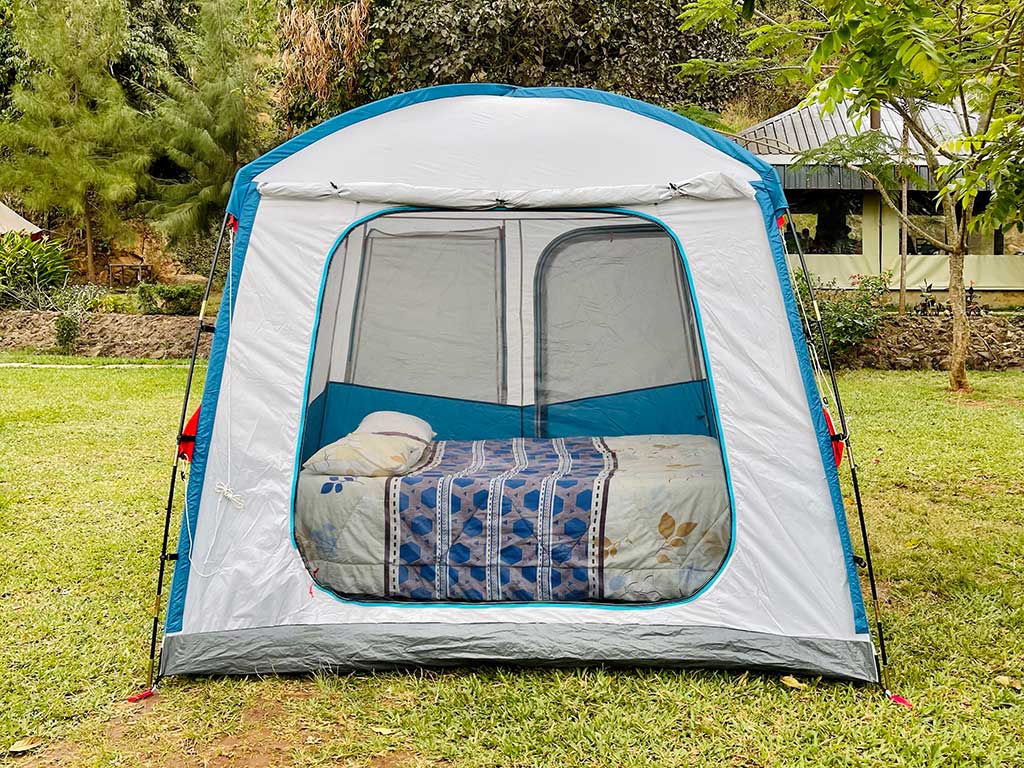 The second more comfortable camping option includes a larger dome tent that can fit a raised bed that fits 2 pax. The spacious tent is water and windproof which should maintain the warmth inside your tent on cold nights. The tent includes a comfortable bed with bedding (bed sheets, duvet blanket, and pillows). This option includes B&B only.